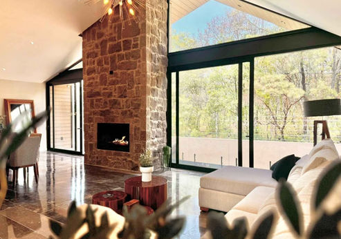 ⦁ Espectacular espacio de sala - comedor con vista a la terraza para disfrutar con una hermosa pared de piedra con chimenea.